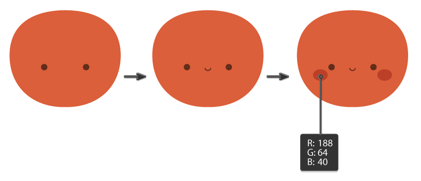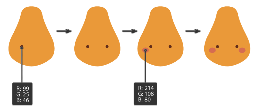 - حالا بریم سراغ لپها! با رنگ R=214, G=108, B=80 یه بیضی کوچیک زیر یکی از چشمها بکش. وقتی انتخابش کردی، دوباره با نگهداشتن Shift + Alt اونو به سمت راست ببر تا یه لپ دیگه هم داشته باشیم. اینطوری دوتا لپ قرمز و بامزه خواهی داشت که درست زیر چشمها قرار میگیرن. 🥰