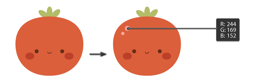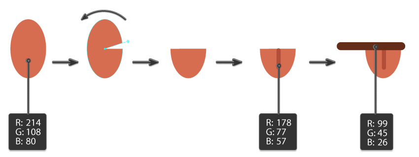 یه دایره کوچولو روی گلابی بکش (رنگش R=214, G=117, B=37). بعد Alt رو نگه دار و دایره رو یه مقدار به سمت کنار بکش تا کپی درست بشه. همین کار رو تکرار کن و هر جا که دلت خواست چندتا کپی دیگه بذار.