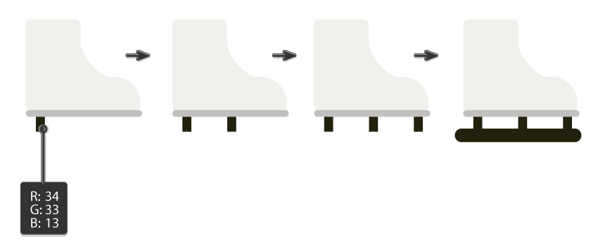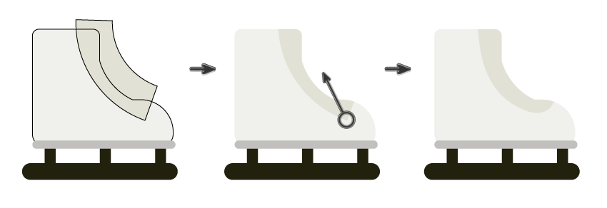• بعد با Shape Builder Tool (Shift-M) همه قسمت‌های روشن اسکیت رو با هم ترکیب کن. این، شکل اصلی اسکیت روی یخ خواهد بود.