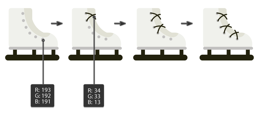 • رنگ Fill رو کمی تیره‌تر کن (R=193, G=192, B=191) و چند تا دایره کوچک برای سوراخ‌های بند کفش بکش.
