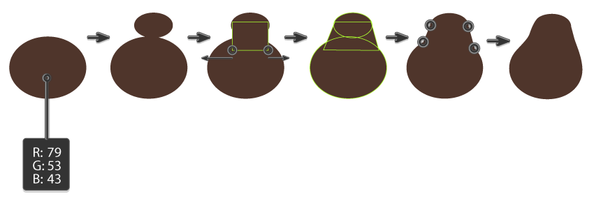 • برای کامل کردن شکل بدن، با Direct Selection Tool (A) قسمت پایین مستطیل رو کمی پهن‌تر کن.
