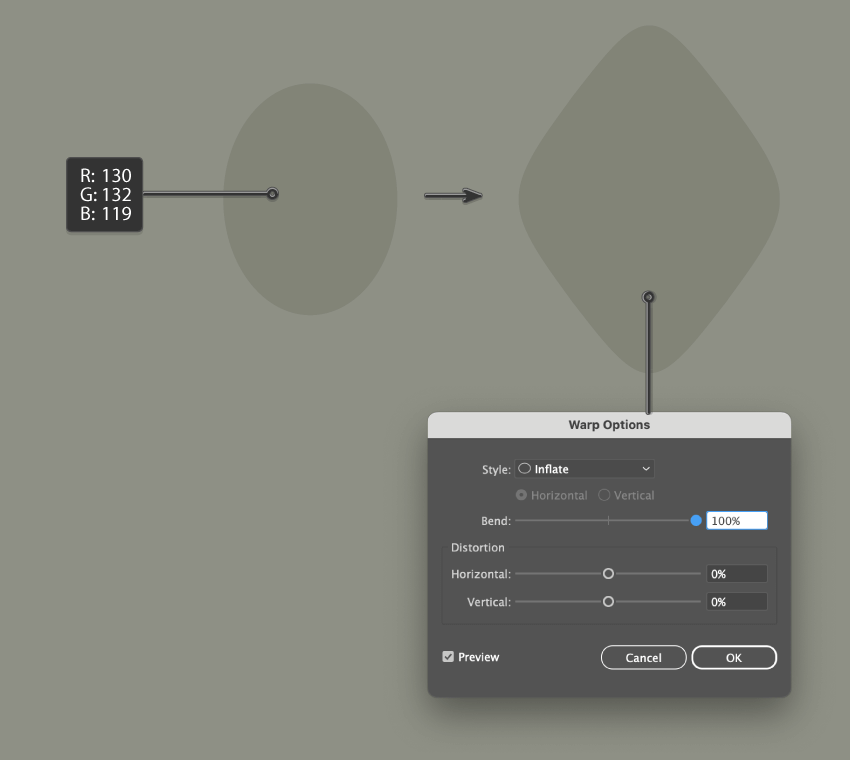 • رنگ Fill رو بذار روی: R=130, G=132, B=119 و با Ellipse Tool (L) یه بیضی بکش.