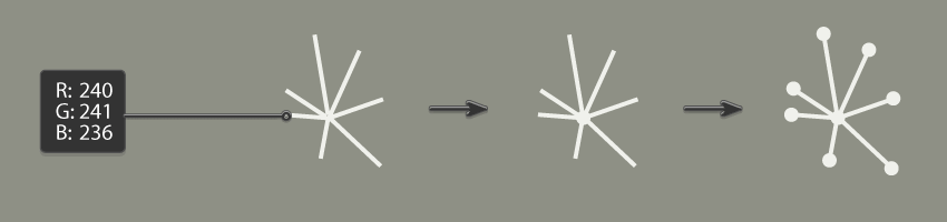 • دایره‌های کوچیک بیشتری هم روی نوک هر خط اضافه کن.