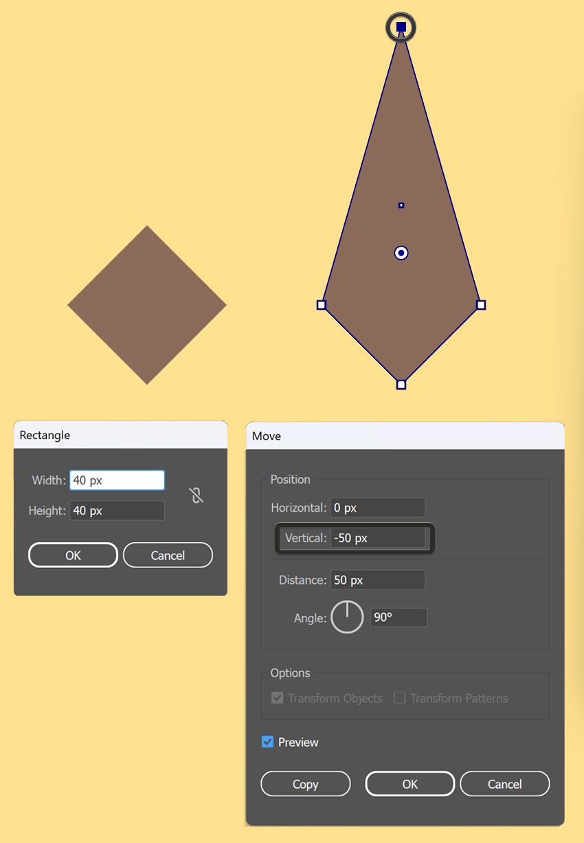 برای گوشهای توتورو، اول با Rectangle Tool (M) یه مربع 40 در 40 پیکسل بکش. مربع رو 45 درجه بچرخون تا به شکل الماس دربیاد.