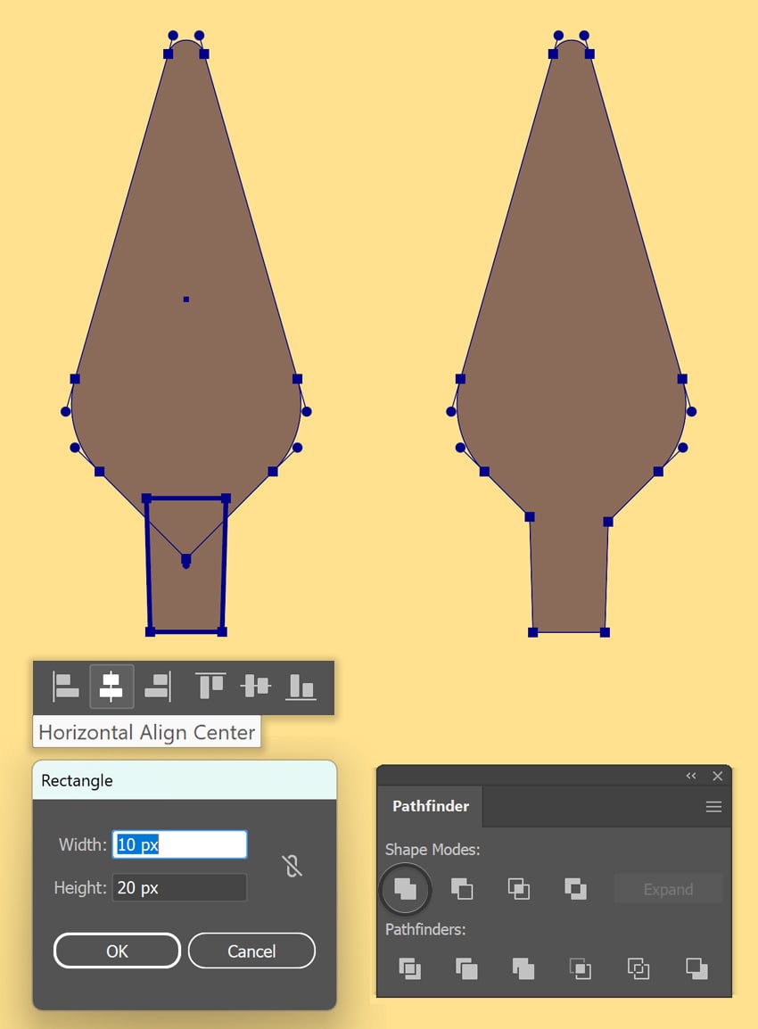 حالا هر دو شکل گوش رو انتخاب کن، Pathfinder Panel رو باز کن (Window > Pathfinder) و روی Unite کلیک کن. این کار دو شکل رو به یک گوش واحد تبدیل میکنه.
