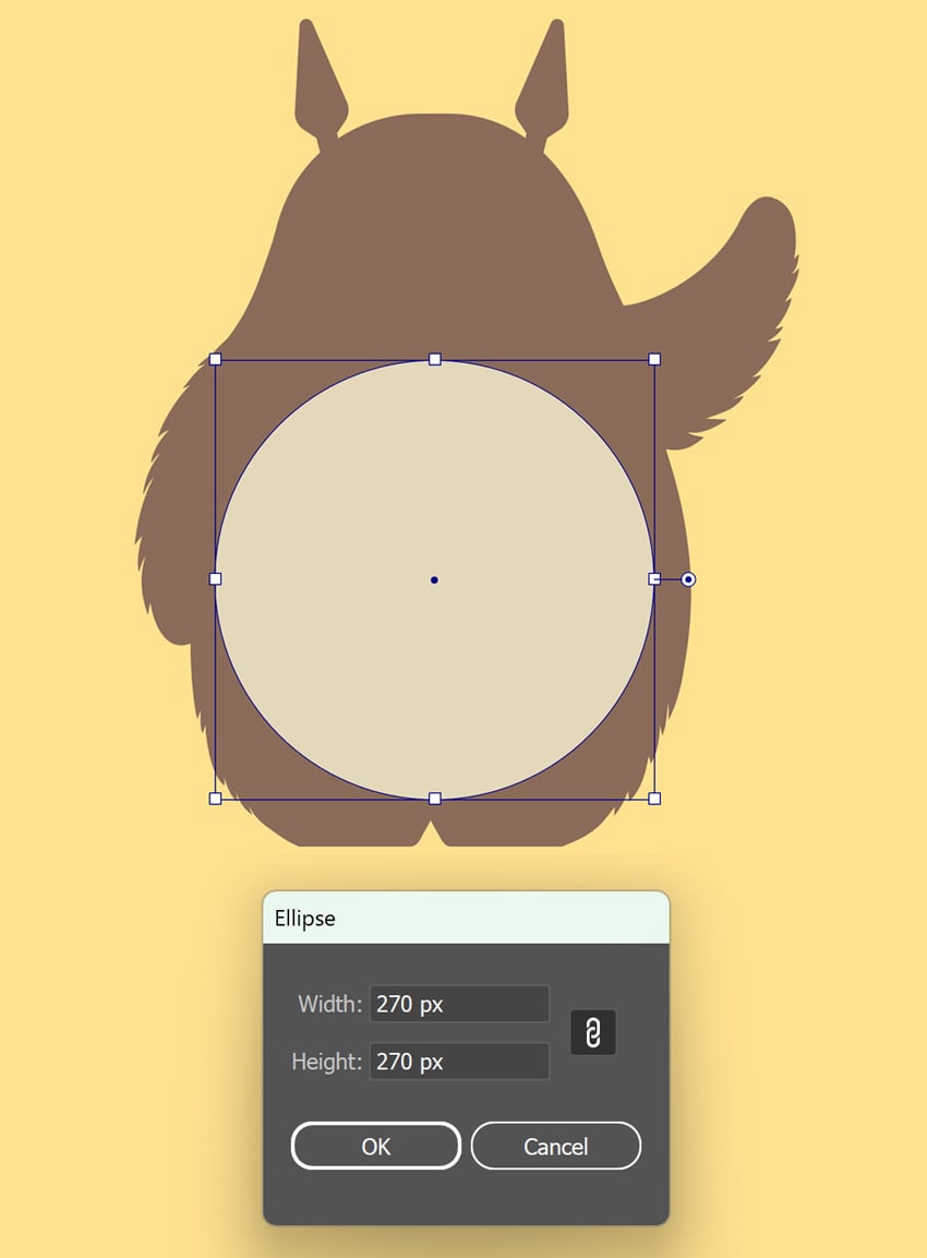 حالا بریم سراغ شکم توتورو. ابزار Ellipse Tool (L) رو انتخاب کن و یک دایره بزرگ به اندازهی 270 x 270 px وسط بدن رسم کن. این دایره پایهی شکم توتورو خواهد بود.