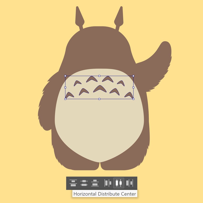 اندازه و موقعیت کپیها را کمی تغییر بده تا الگوی متمایز توتورو روی بخش بالایی شکم ایجاد شود.