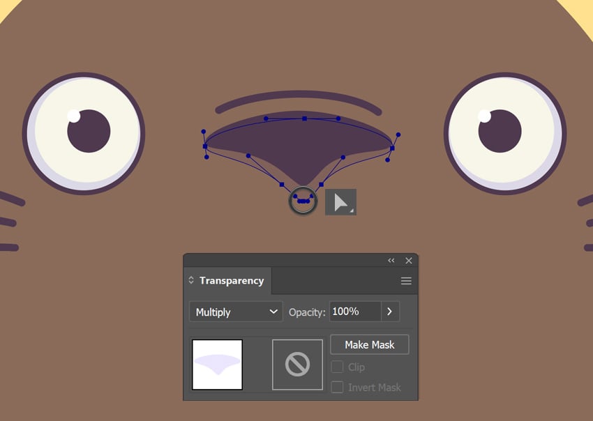 - در Transparency panel حالت Multiply Mode را برای ایجاد سایهای ملایم تنظیم کن.