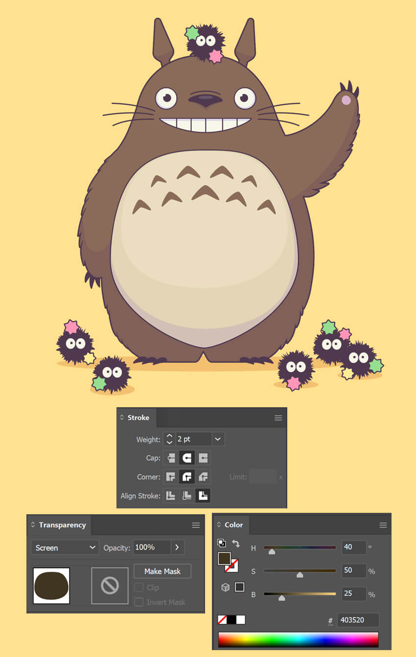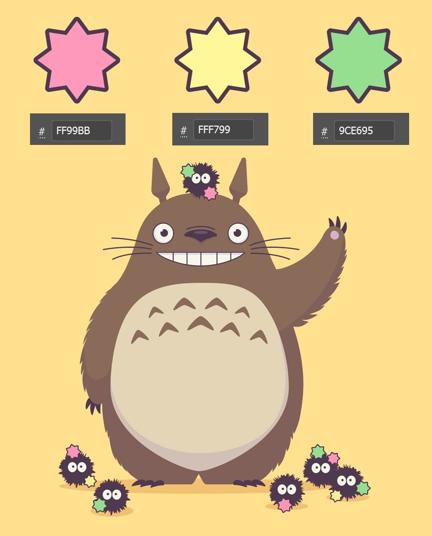 توی این آموزش قراره قدم به قدم با هم یه تصویر وکتور جذاب از توتورو و اون موجودای کوچیک دودهای (soot sprites) – همون شخصیتهای بامزهی انیمیشن همسایه من توتورو از استودیو جیبلی – درست کنیم.