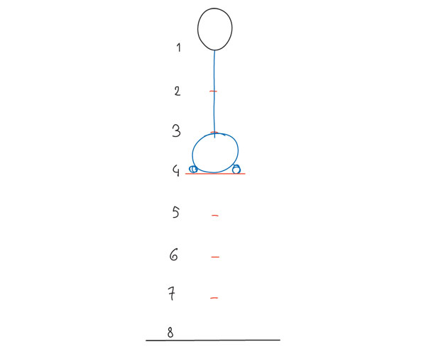 حالا از بالای سر، یک خط عمودی تا زمین پایین بیاورید.