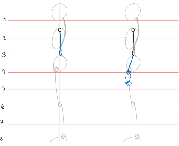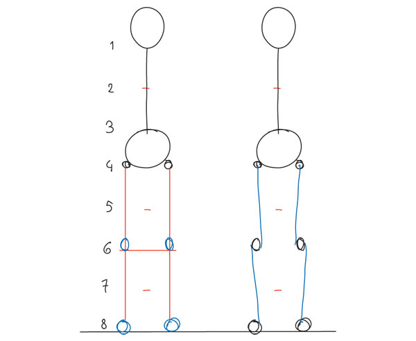 فرض کنیم فیگور ما در این طراحی آناتومی، ایستاده و پاها در امتداد عمودی مفصلهای لگن قرار دارن.